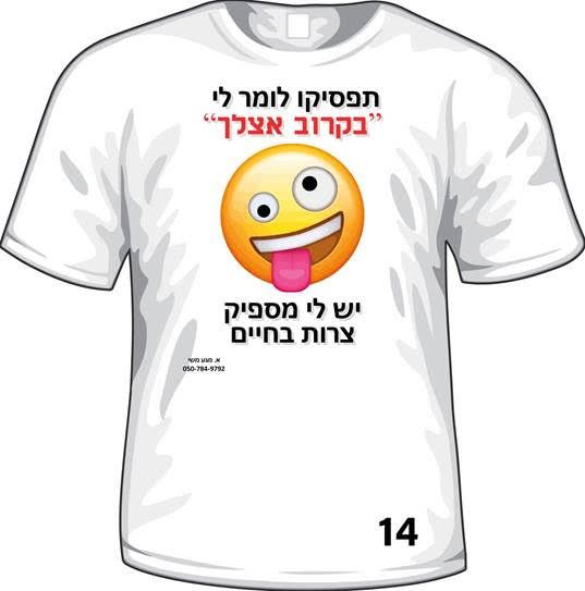מגע משי הינה חברה המתמחה בתחום חולצות הדפסה לכל אירוע פרטי ועסקי בעיצוב אישי, ובכל כמות אפילו על מספר בודד של חולצות. מבחר עיצובים ורעיונות מדליקים של חולצות מודפסות לחתונה, חולצות מודפסות לבר מצווה ולבת מצווה, הדפס על חולצות לימי הולדת, הדפסי חולצות לאירועי חברה, חולצות הדפסה למסיבת רווקים, הדפסת חולצות למסיבת רווקות, הדפס על חולצות להפקות טלוויזיה וקלנוע, הדפסת חולצות לדיילים ודיילות אירועים ועוד…מבחר רחב של דוגמאות להדפסה במגוון סגנונות ובאיכות גבוהה.